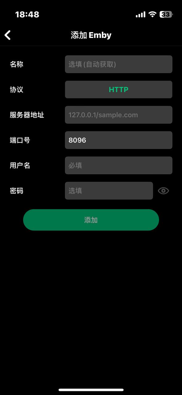 打开 vidHub, 点击 影视服务器,点击 Emby会员中心 中有提供最新地址和端口,填写到 服务器地址端口号,填写会员账号密码,点击添加。