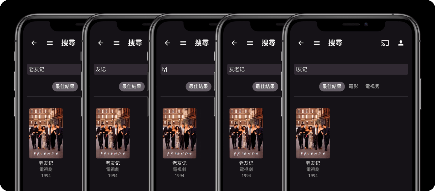 例如: 搜索 老友记友记lyjil友记均可得到 老友记 这个搜索结果。如图: